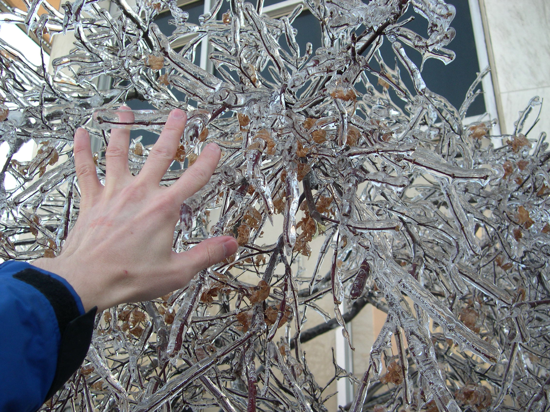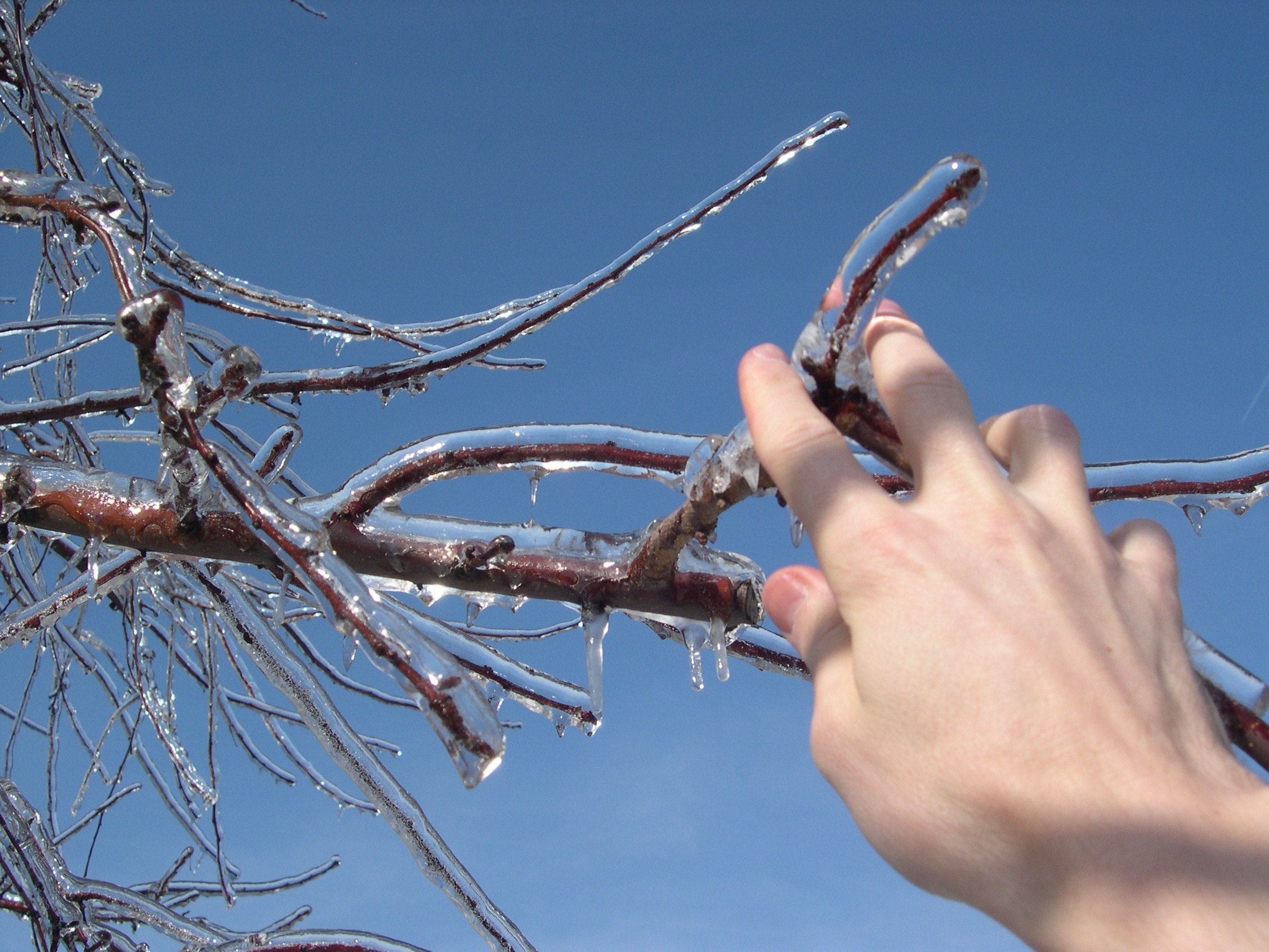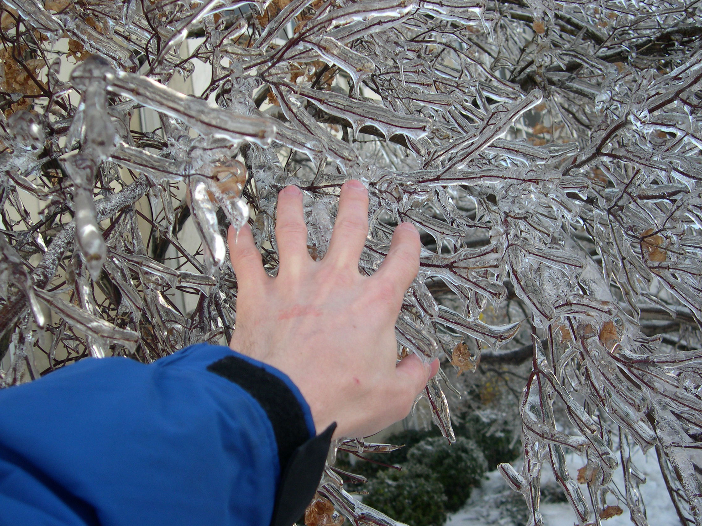 the iced over branches. In each case, I try to put at least part of my hand behind the ice, so you