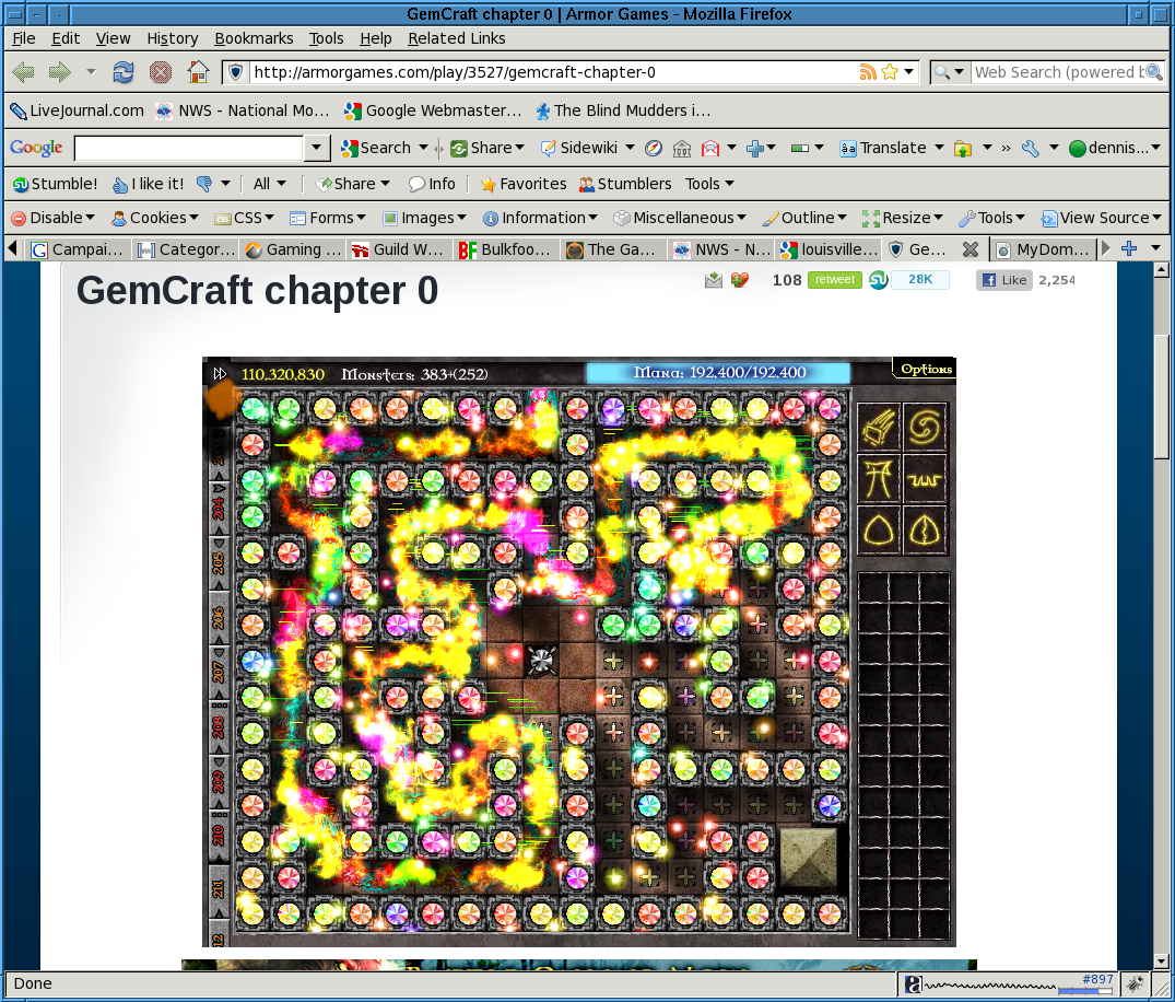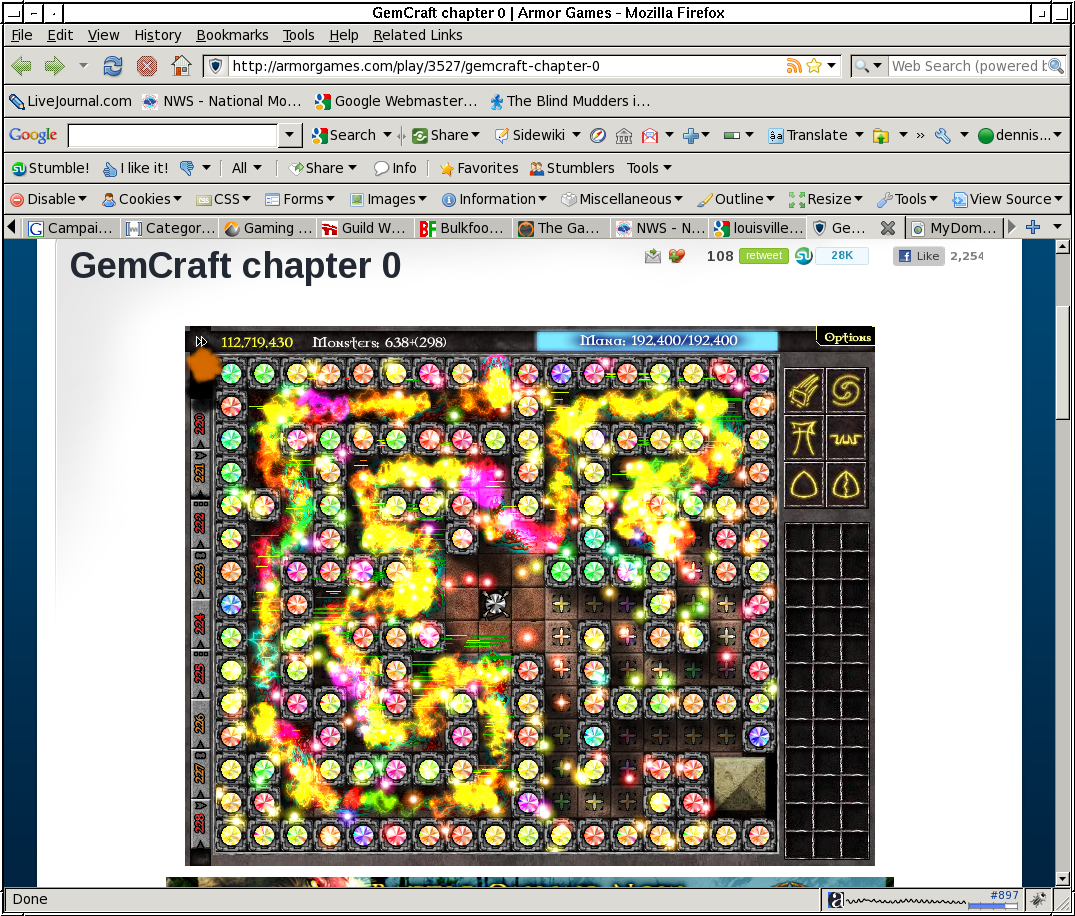 gems placed in towers. The gems shoot magical bolts at the monsters which